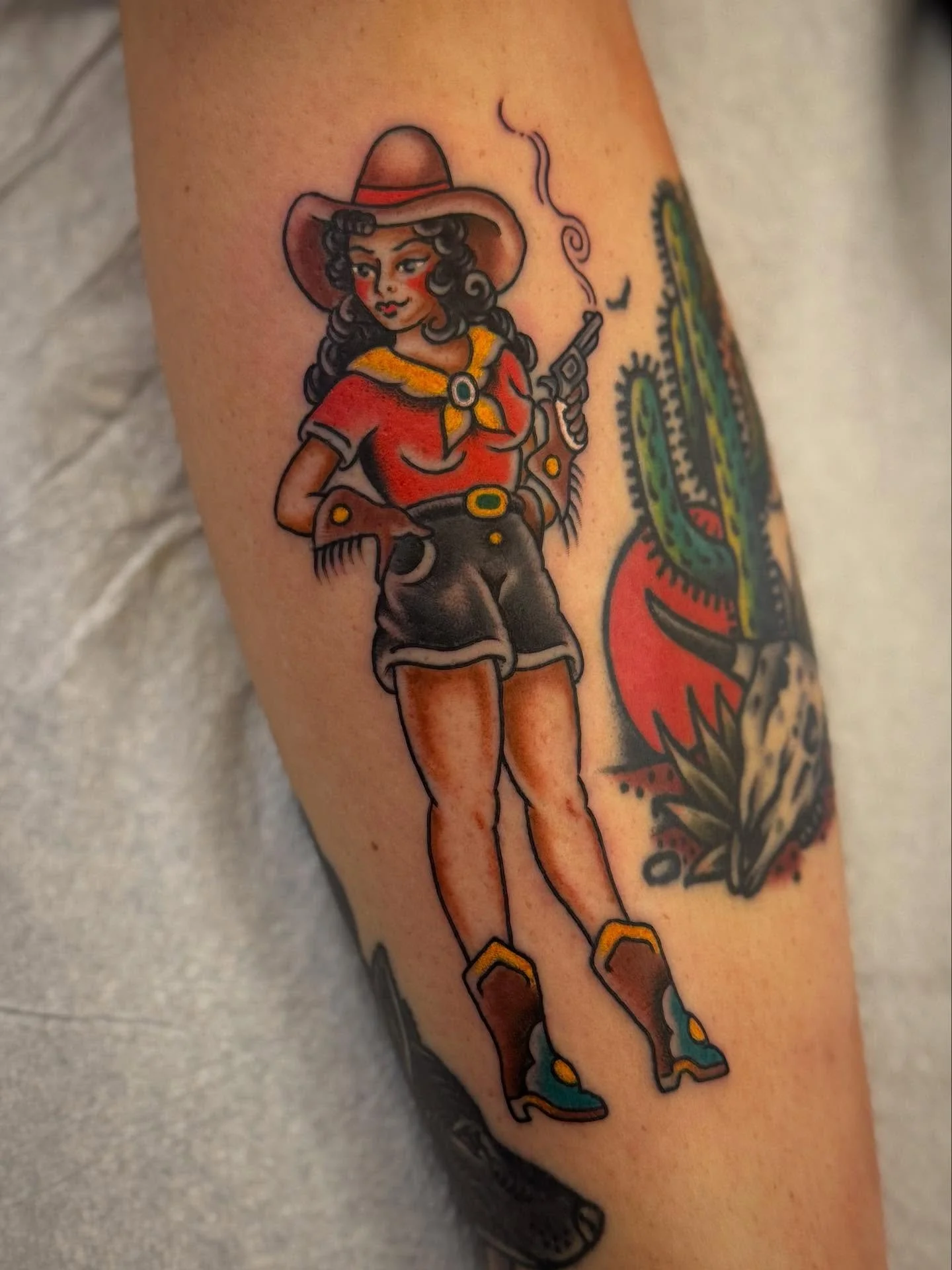 #ericmaaskesclassictattoo #fullerton #fullertontattooartists #thankyou #thatswhatsup #cowgirl #cowgirltattoo #dontfen