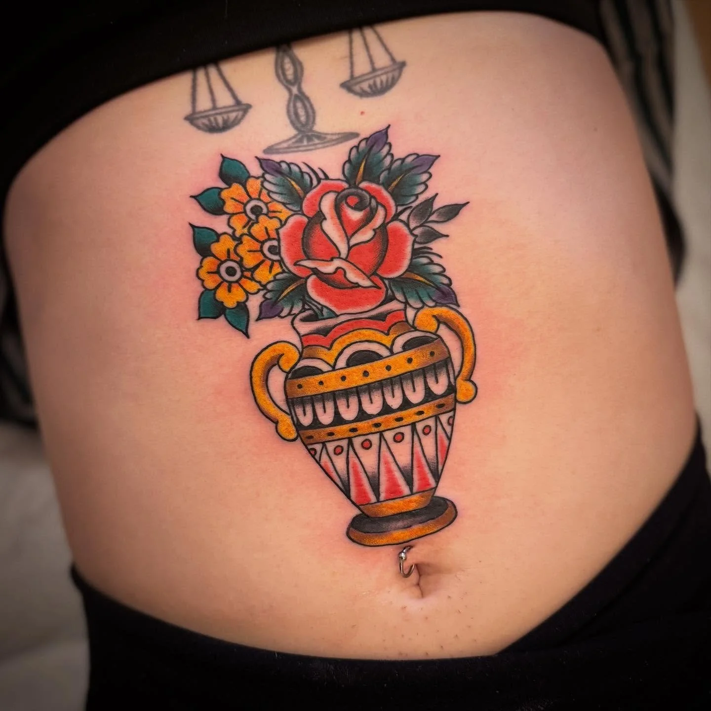 #ericmaaskesclassictattoo #fullerton #fullertontattooartists #thankyou #thatswhatsup #rose #rosetattoo #vase #flowers #walkin