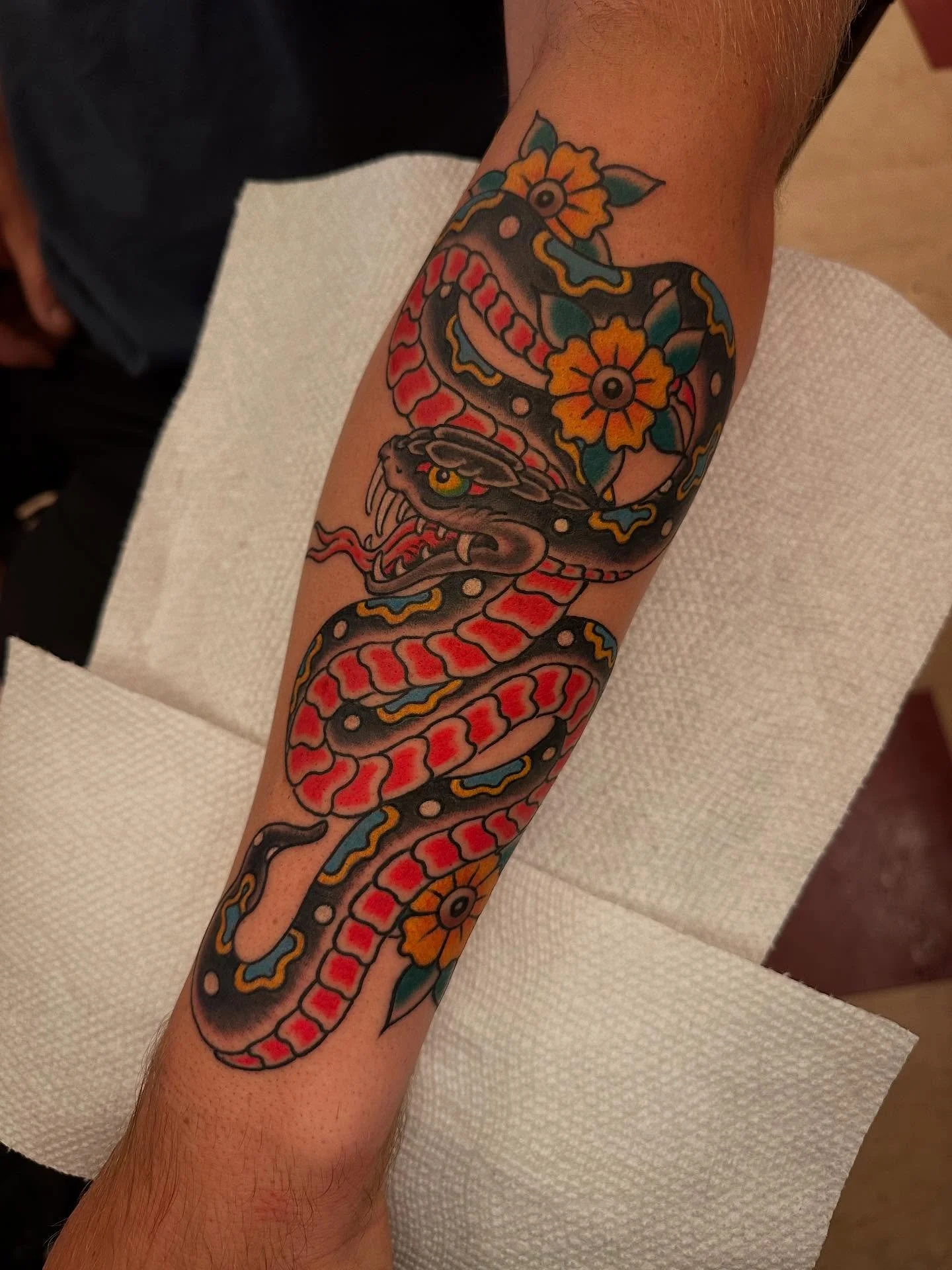 #ericmaaskesclassictattoo #fullerton #fullertontattooartists #thankyou #thatswhatsup #snake #snakeofinstagram #snaketattoo