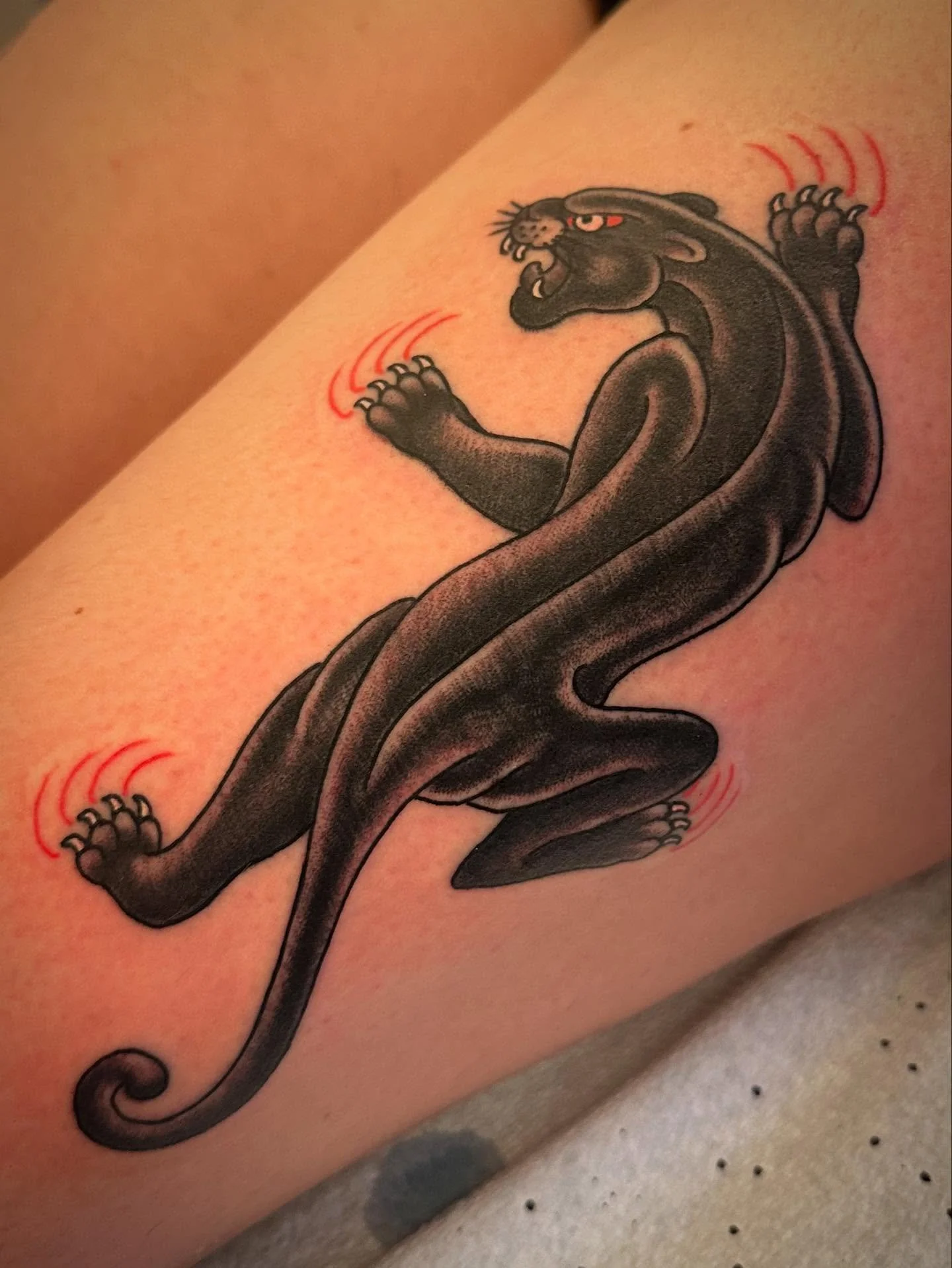 #ericmaaskesclassictattoo #fullerton #fullertontattooartists #thankyou #thatswhatsup #panther #panthertattoo #pantera #walkinstyle