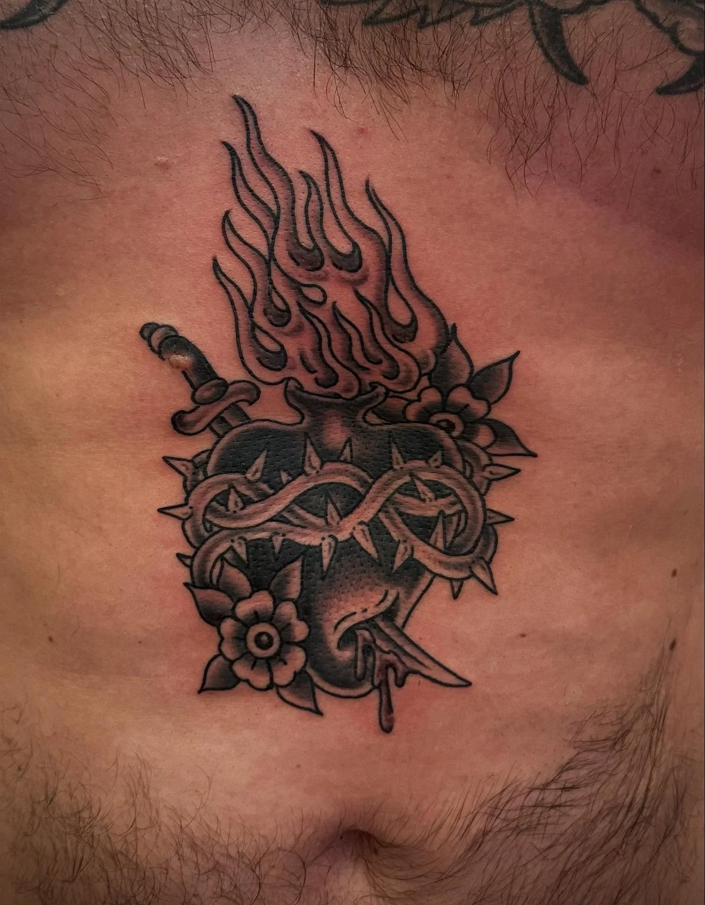 View fullsize Sacred Heart under a one shot chest eagle! ❤️🦅 to book, shoot me an email! Done @classicfullerton