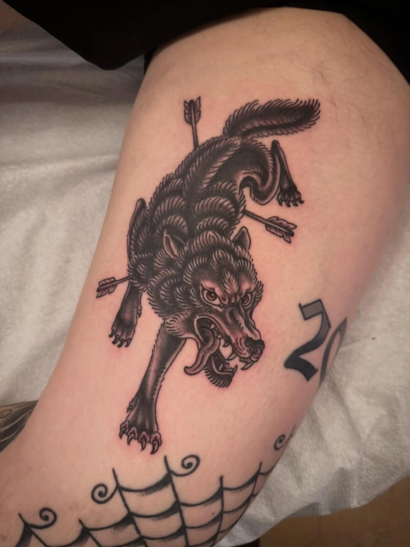 #ericmaaskesclassictattoo #fullerton #fullertontattooartists #thankyou #thatswhatsup #wolf #wolfhead #iamthewolfman